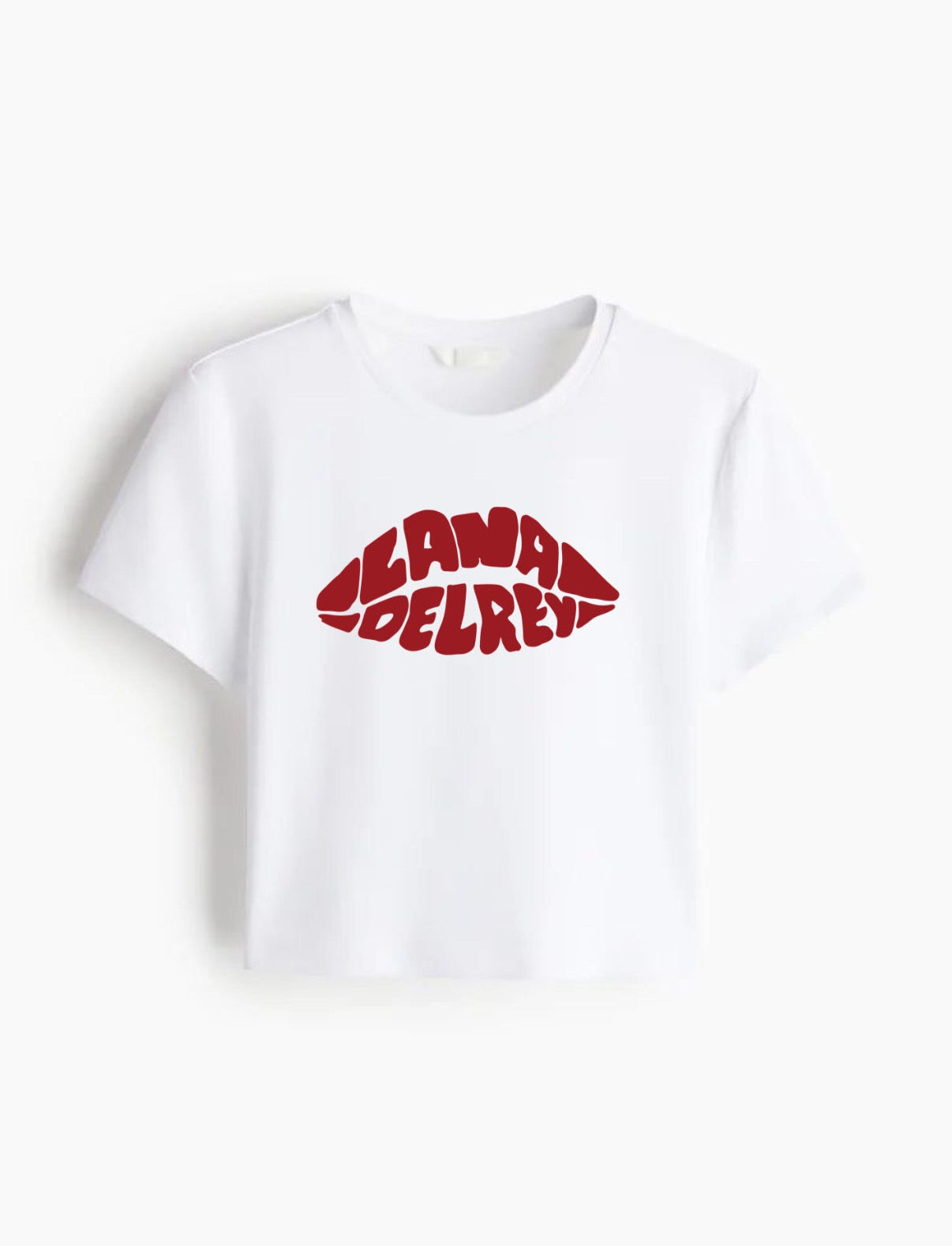 A soft homage to the queen of sad-girl glamour. This baby tee is for romantics with bite, featuring a retro, warped red Lana Del Rey graphic on a body-hugging crop. Think summer heartbreak, eyeliner tears, and all your best main character moments. Fitted, emotional, and perfect for your next poetic spiral.