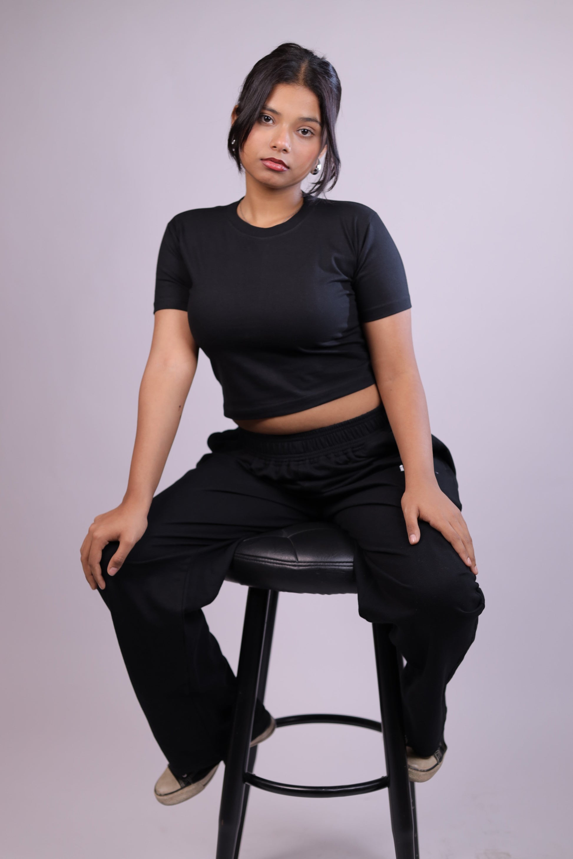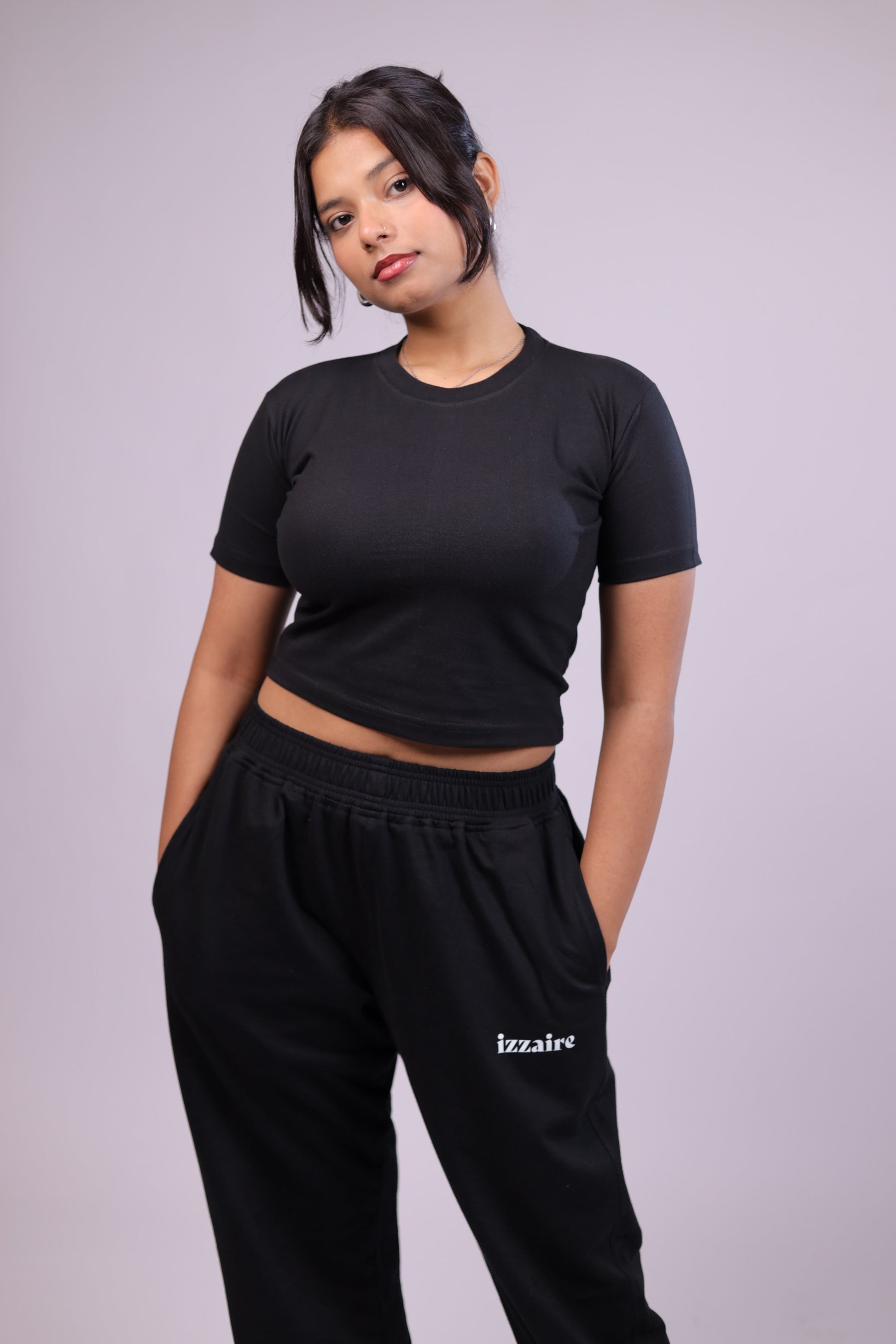 A no-fuss, all-feel set for your off-duty days or on-point errands. The onyx coord hugs just right without trying too hard, a fitted cropped tee paired with relaxed, high-comfort lowers. Soft on the skin, strong in the vibe.