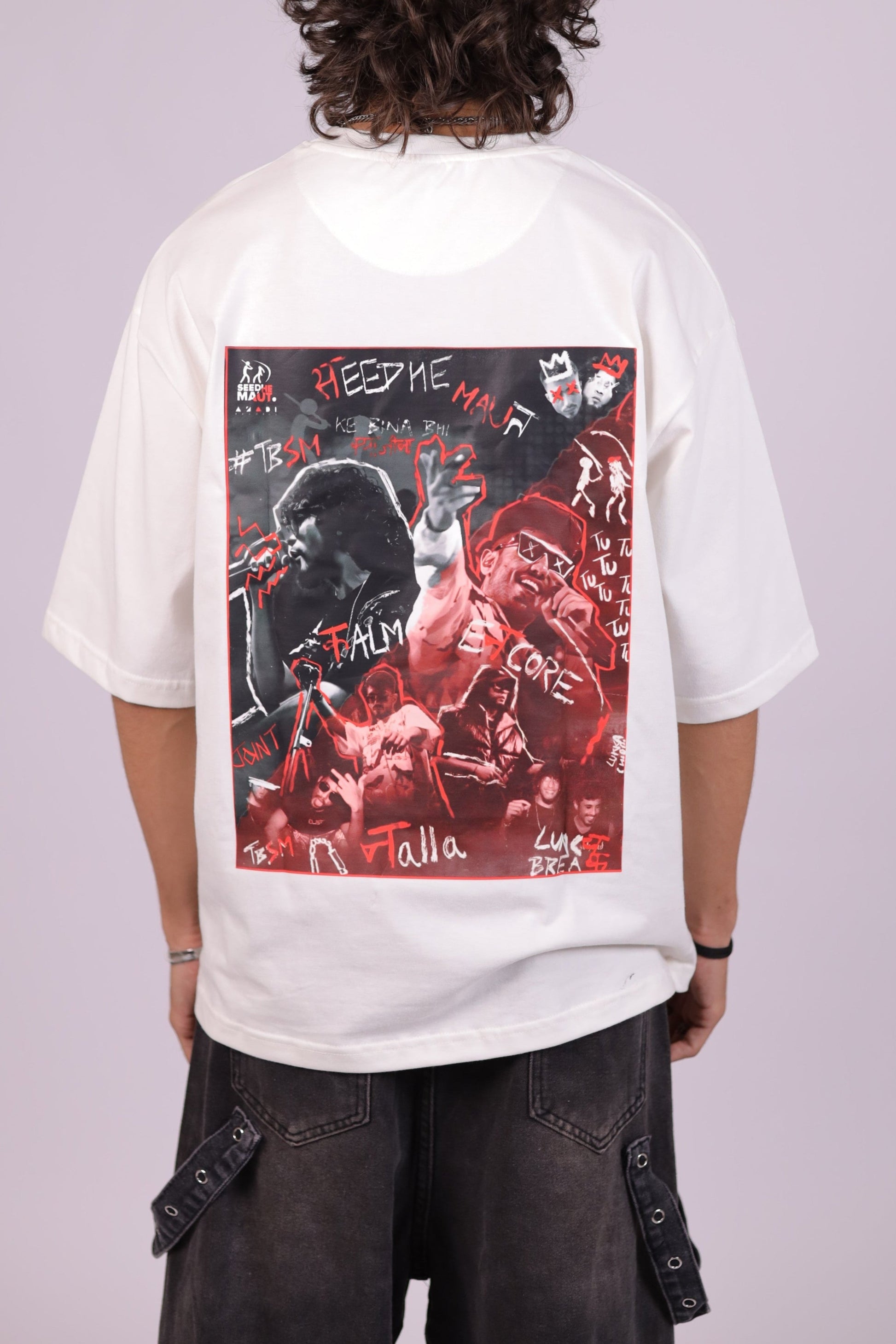Born from the raw, untamed energy of Indian hip-hop, Encore Heat is a riot on fabric. Layered with gritty concert visuals, graffiti-style scrawls, and the unmistakable fire of Seedhe Maut, this oversized tee is a tribute to bars that bite and beats that bruise. The split chili graphic? That’s the heat you bring when your voice cuts through the noise.